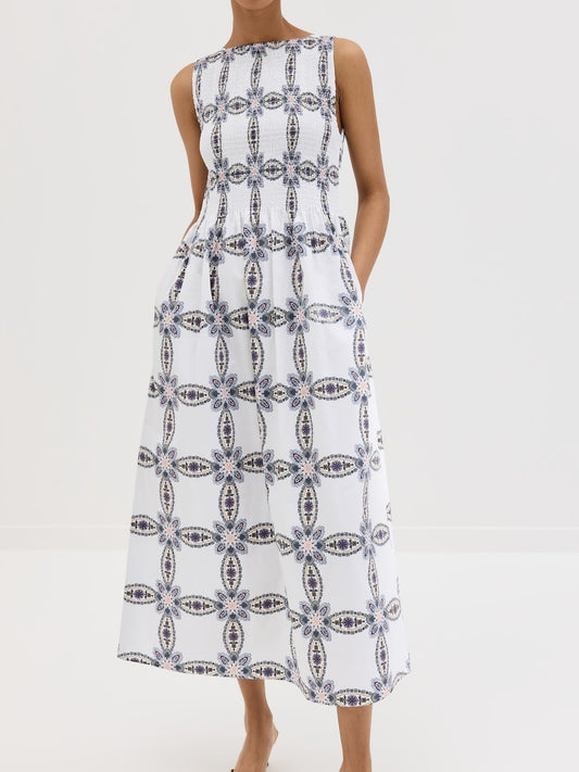 Black And White Printed Sleeveless Dress