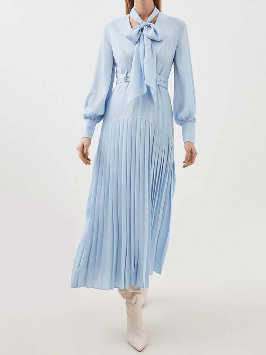 Balloon Sleeve Pleated Patchwork Dress