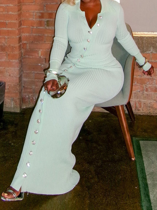 Sexy Knitted Button Up Slit Hem Maxi Dress
