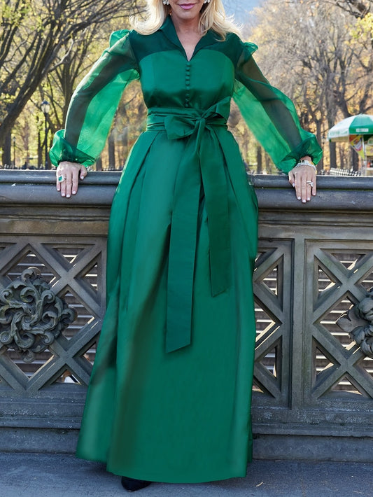 Vintage Lace-up Long Sleeve Denim Maxi Dress