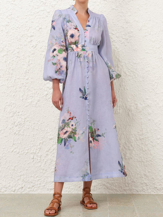 White Mohair V-neck Button Imitation Ostrich Feather Midi Dress