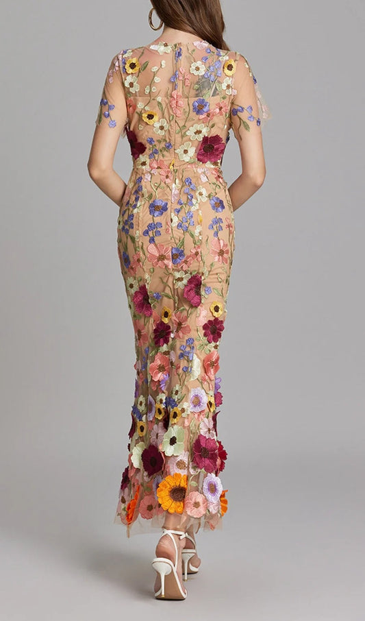 Midi Sleeves Floral Embroidery Fishtail Midi Dress