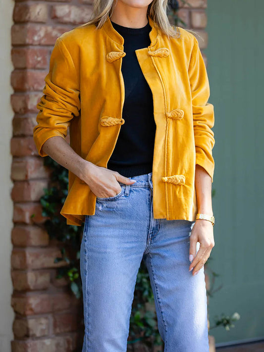 Mandarin Collar Knot Frog Slosures Velvet Jacket