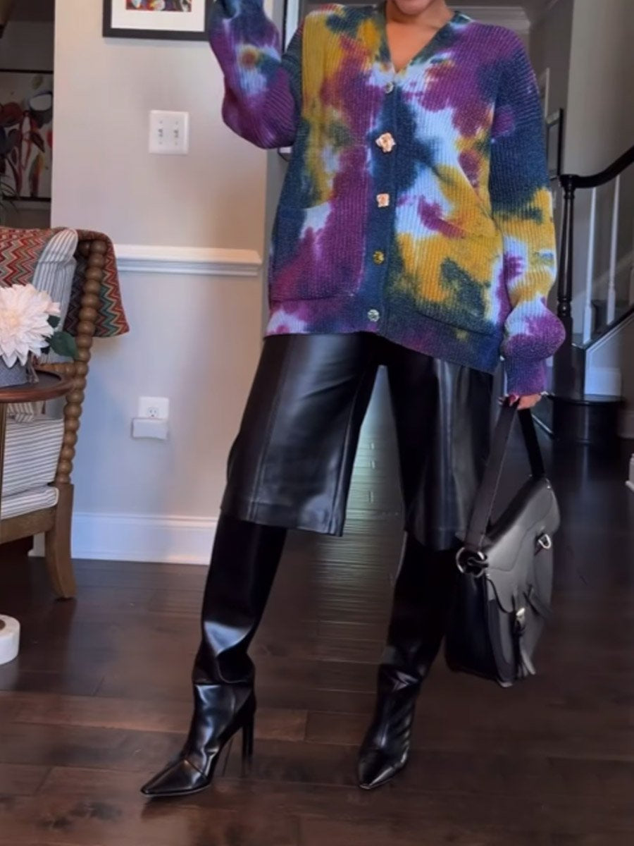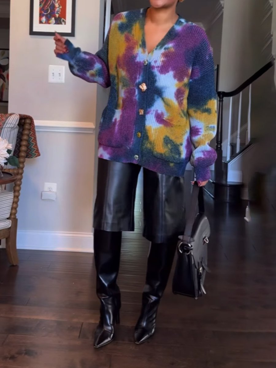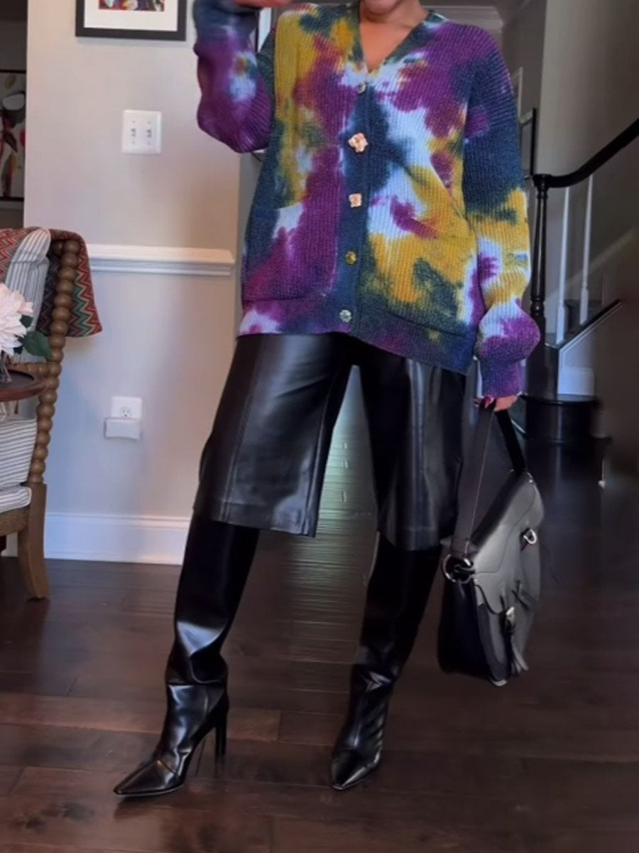 Drop Shoulder Sleeve V Neck Knitted Cardigans
