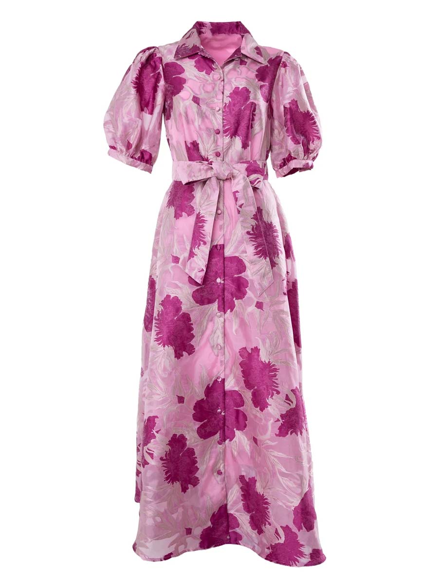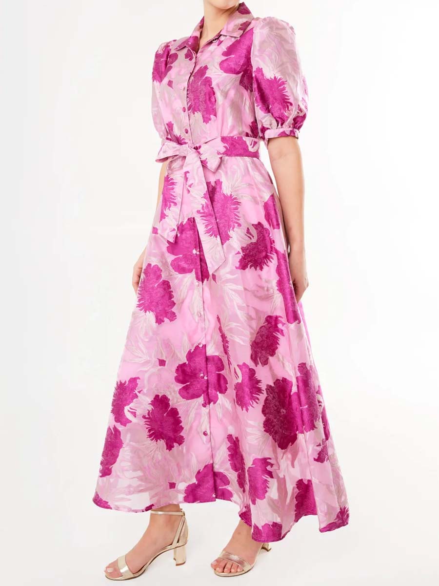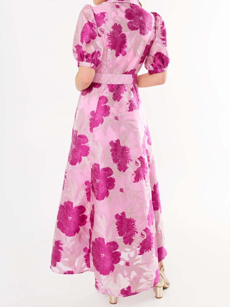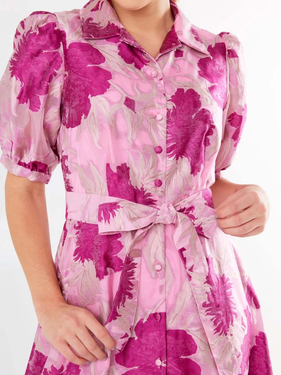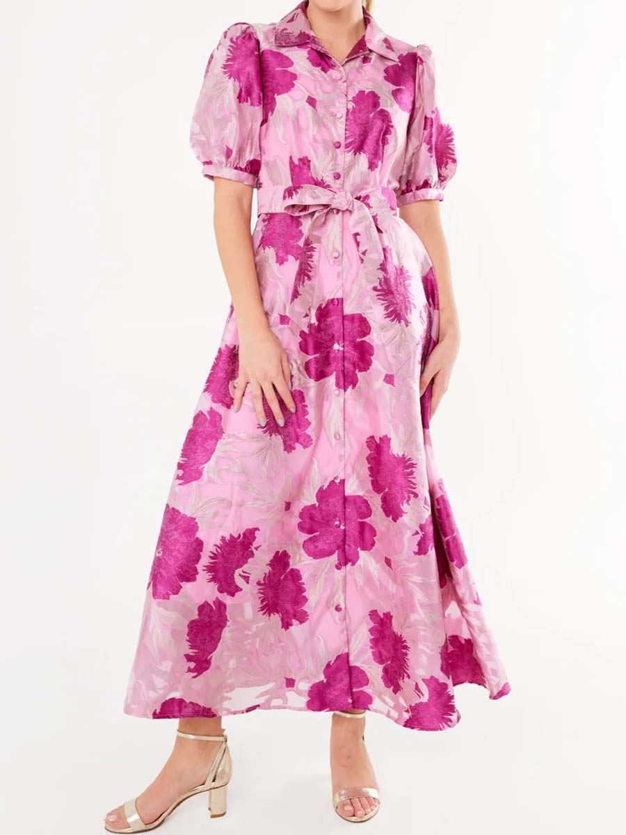 Elegant Printed Short Sleeve Belted Dress