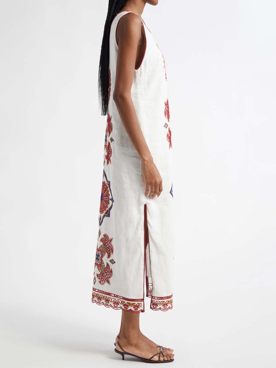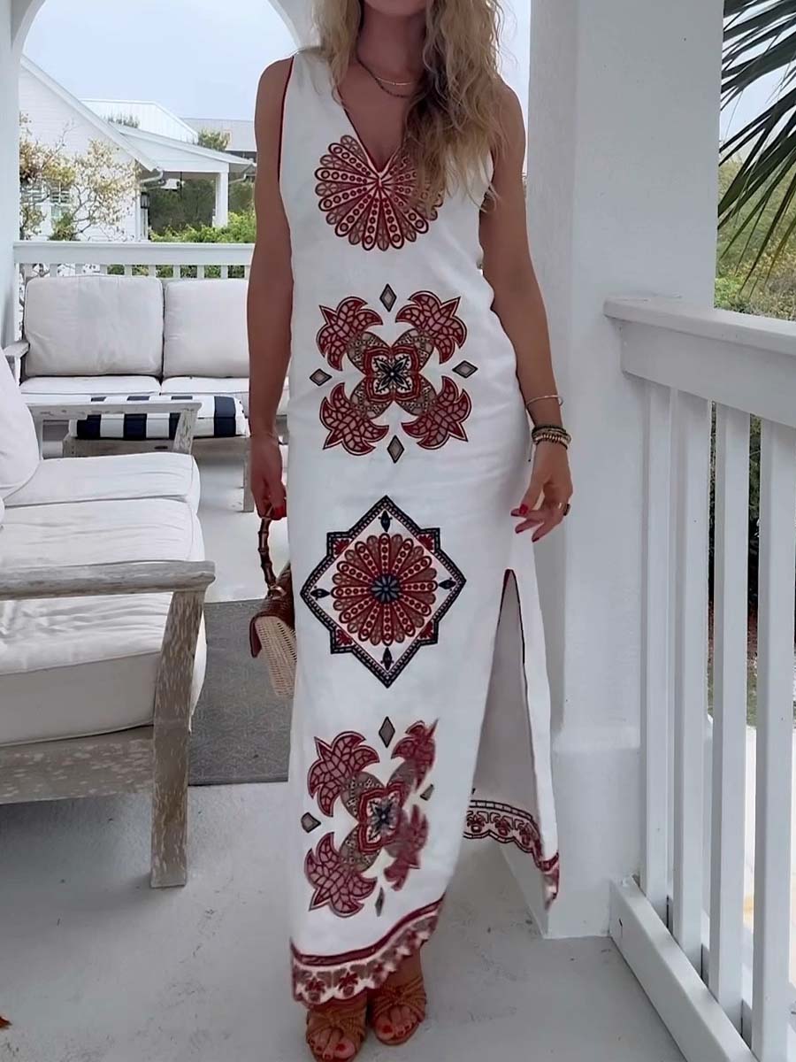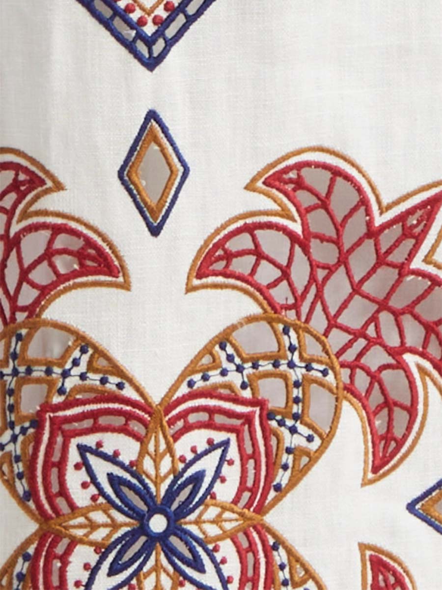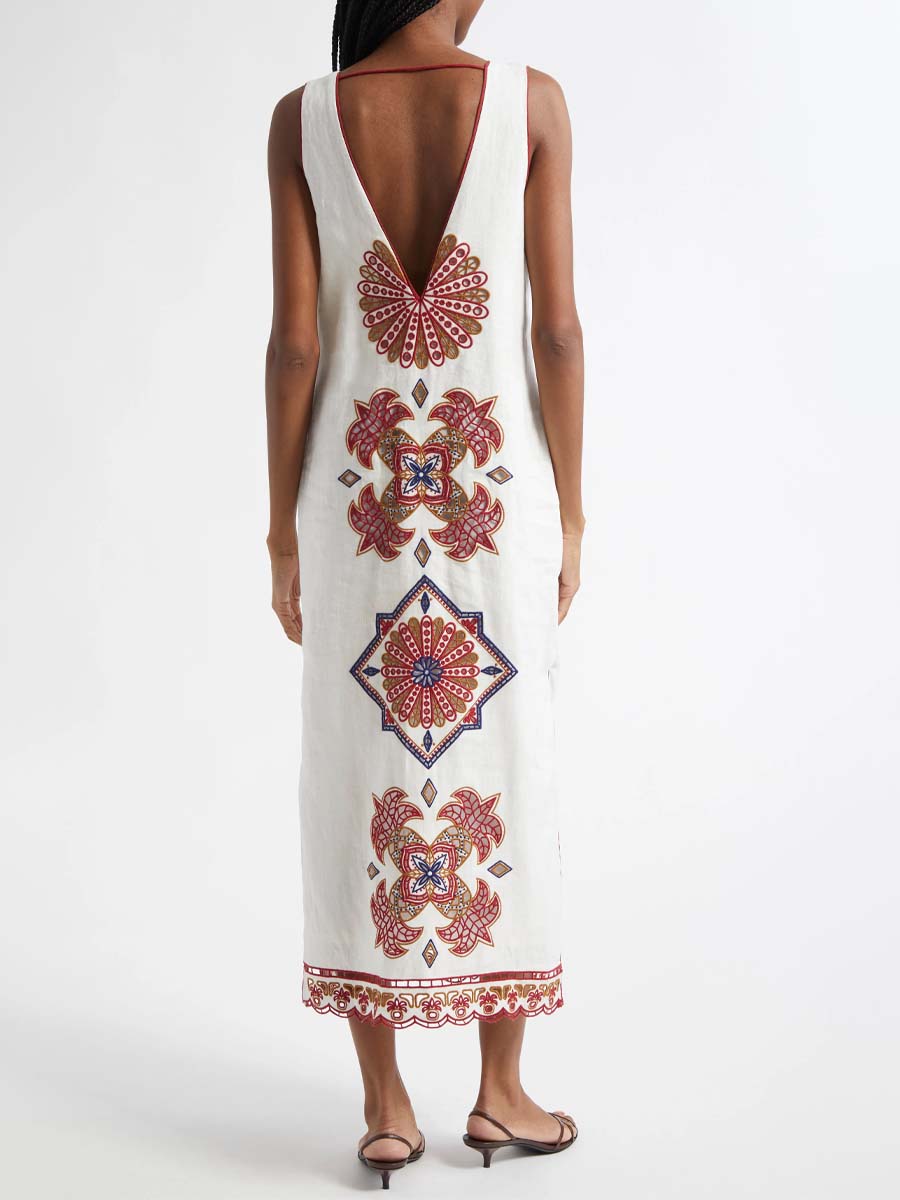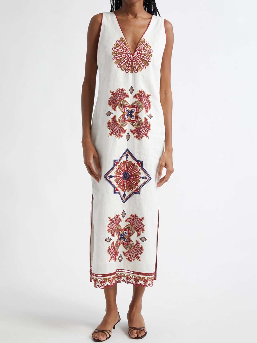 Embroidered Deep V Neck Dress
