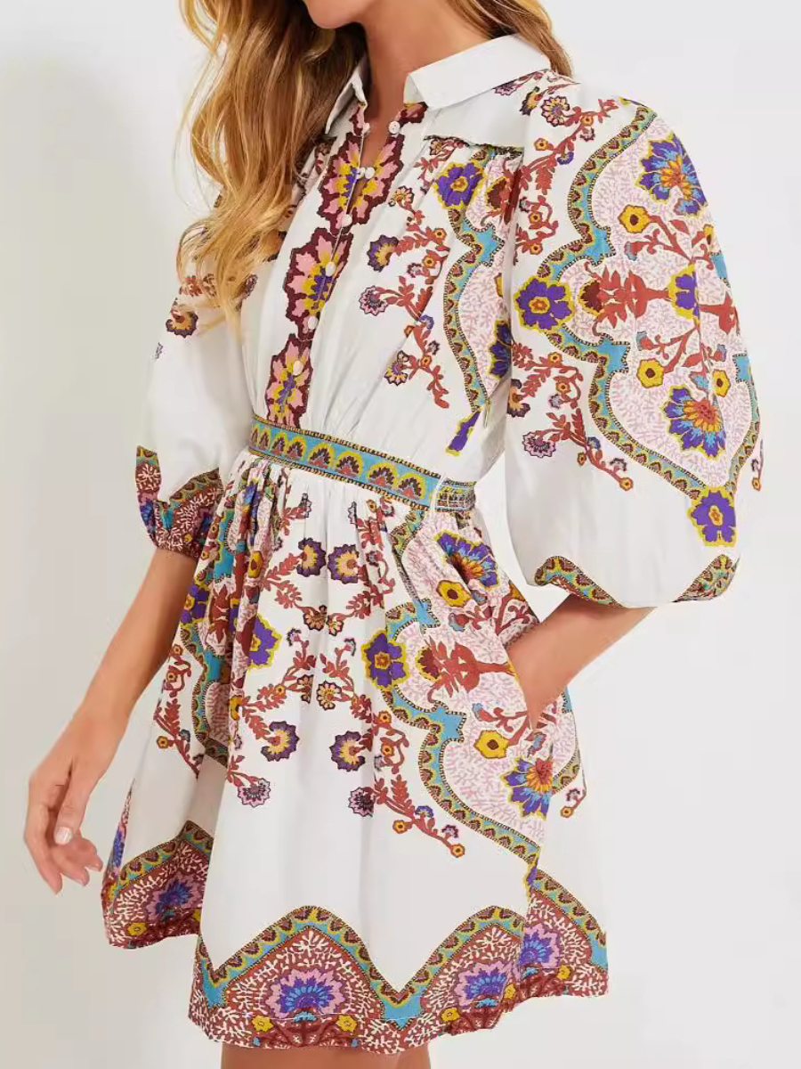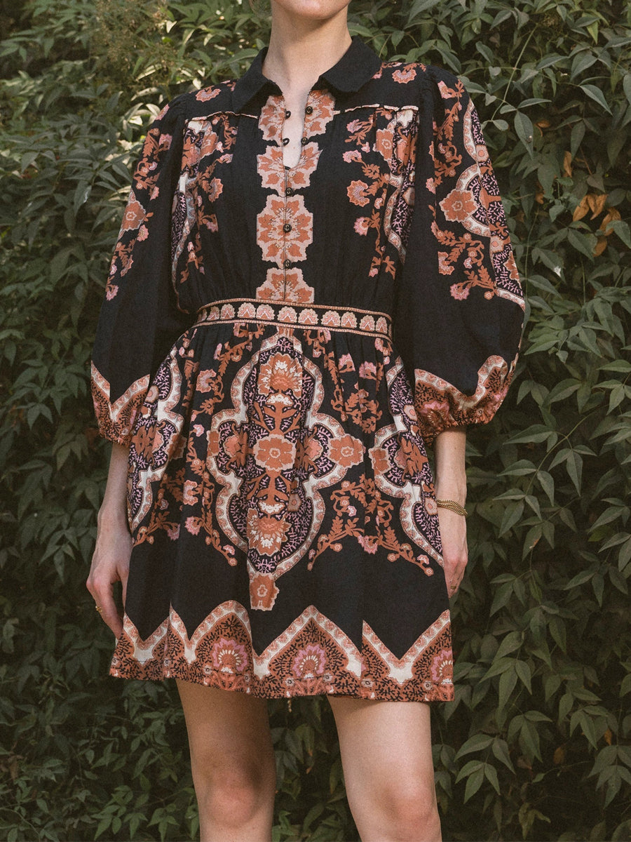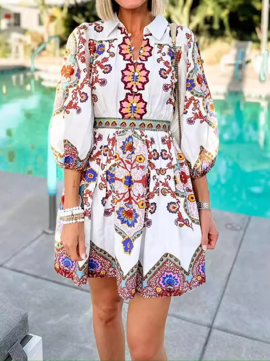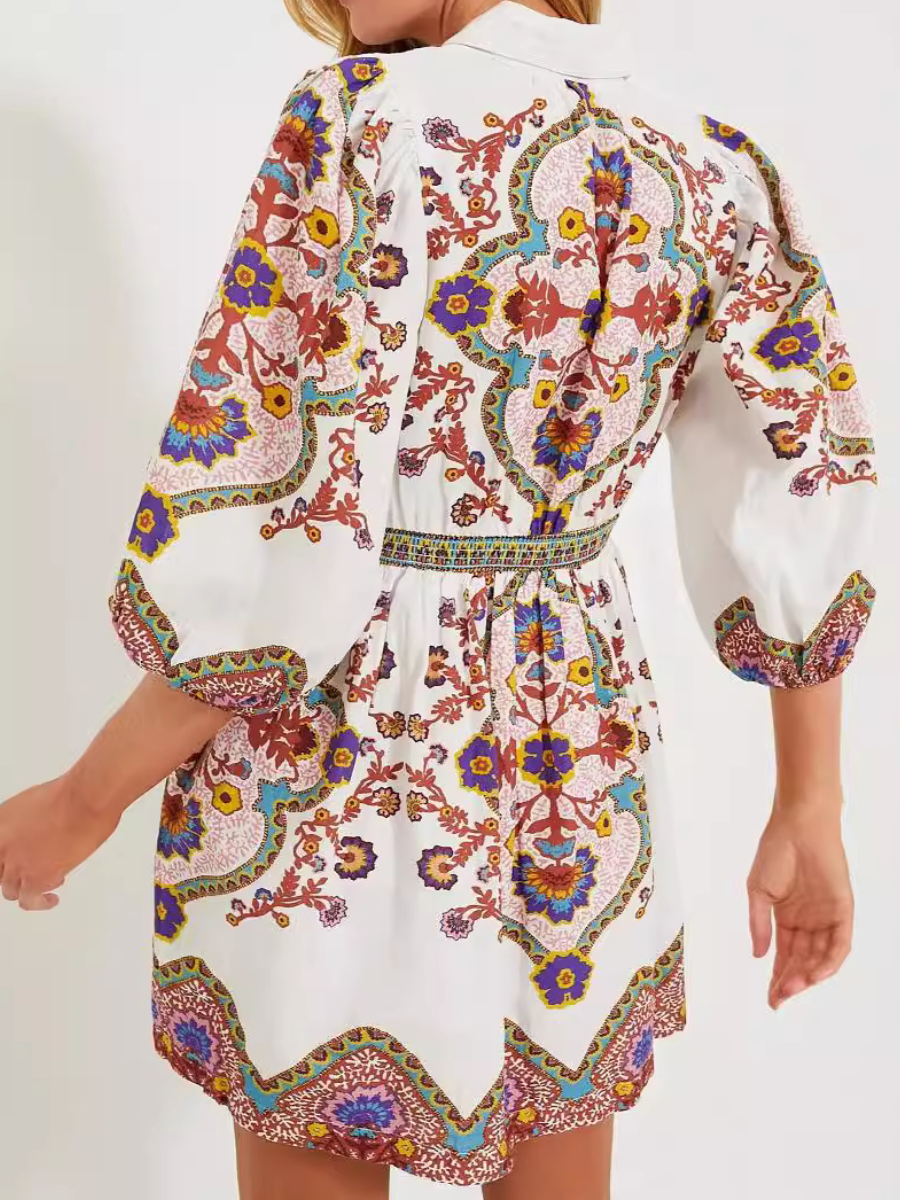 - Features a vibrant ethnic bohemian print with intricate patterns.