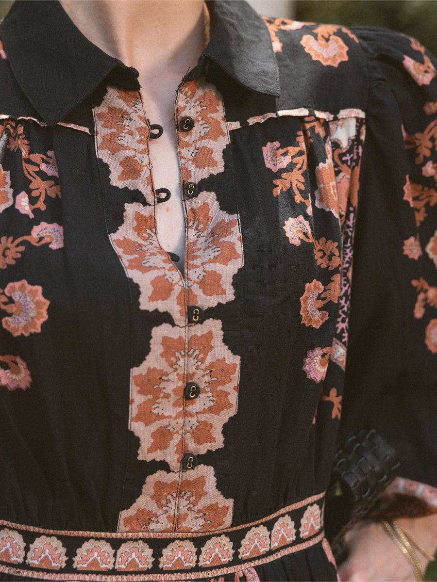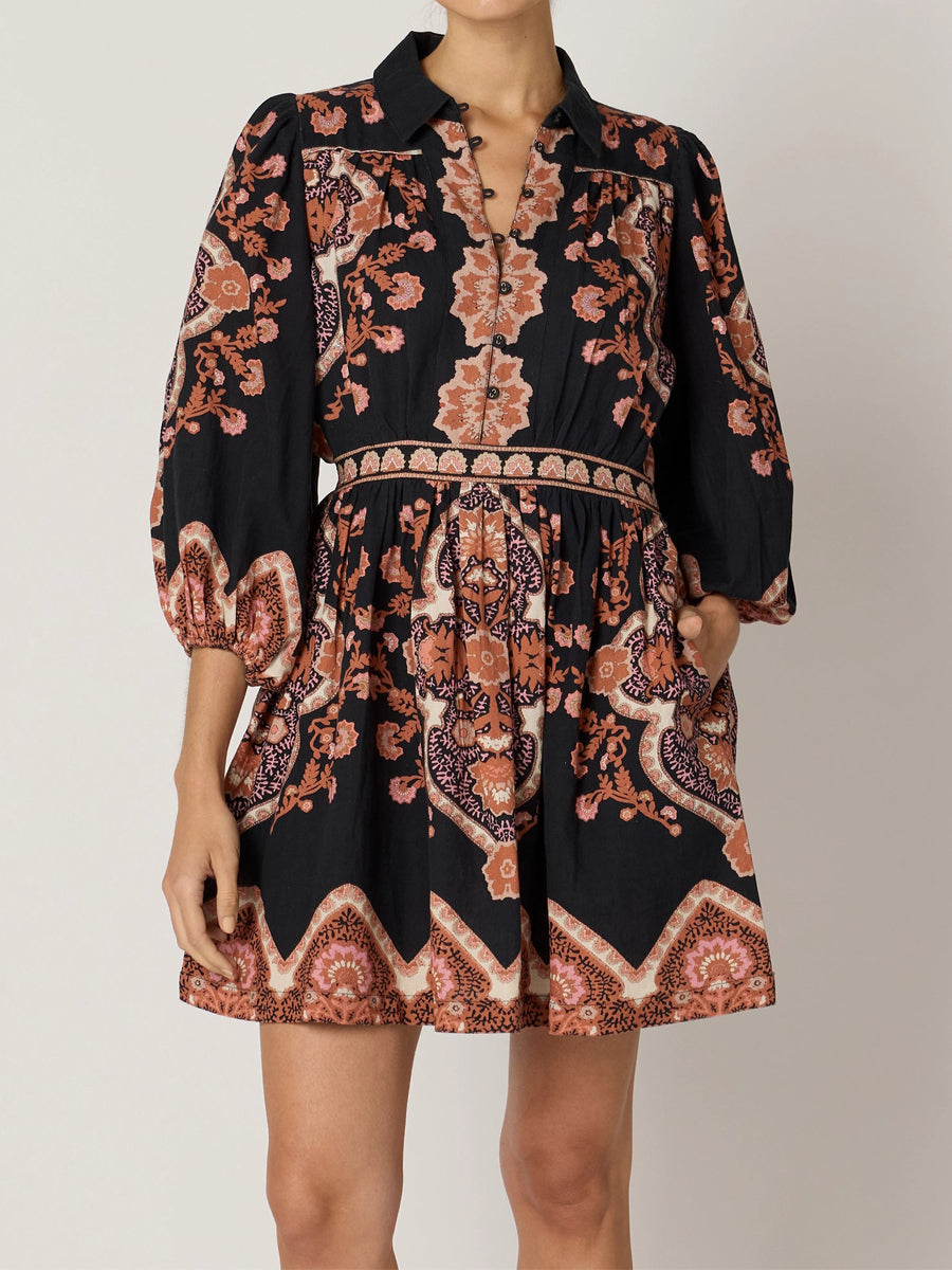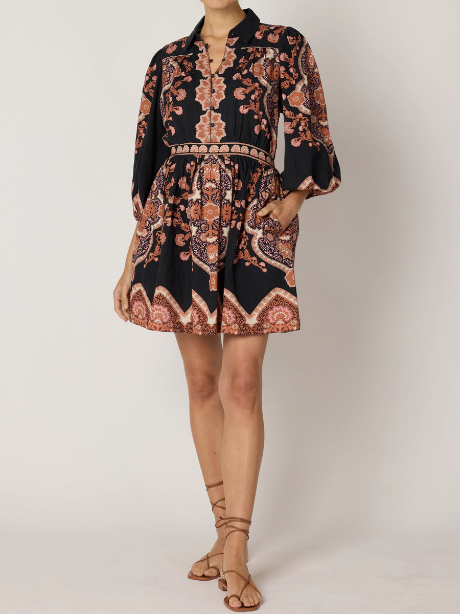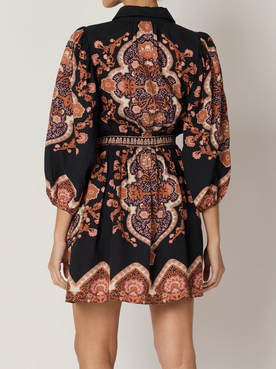 - Features a vibrant ethnic bohemian print with intricate patterns.