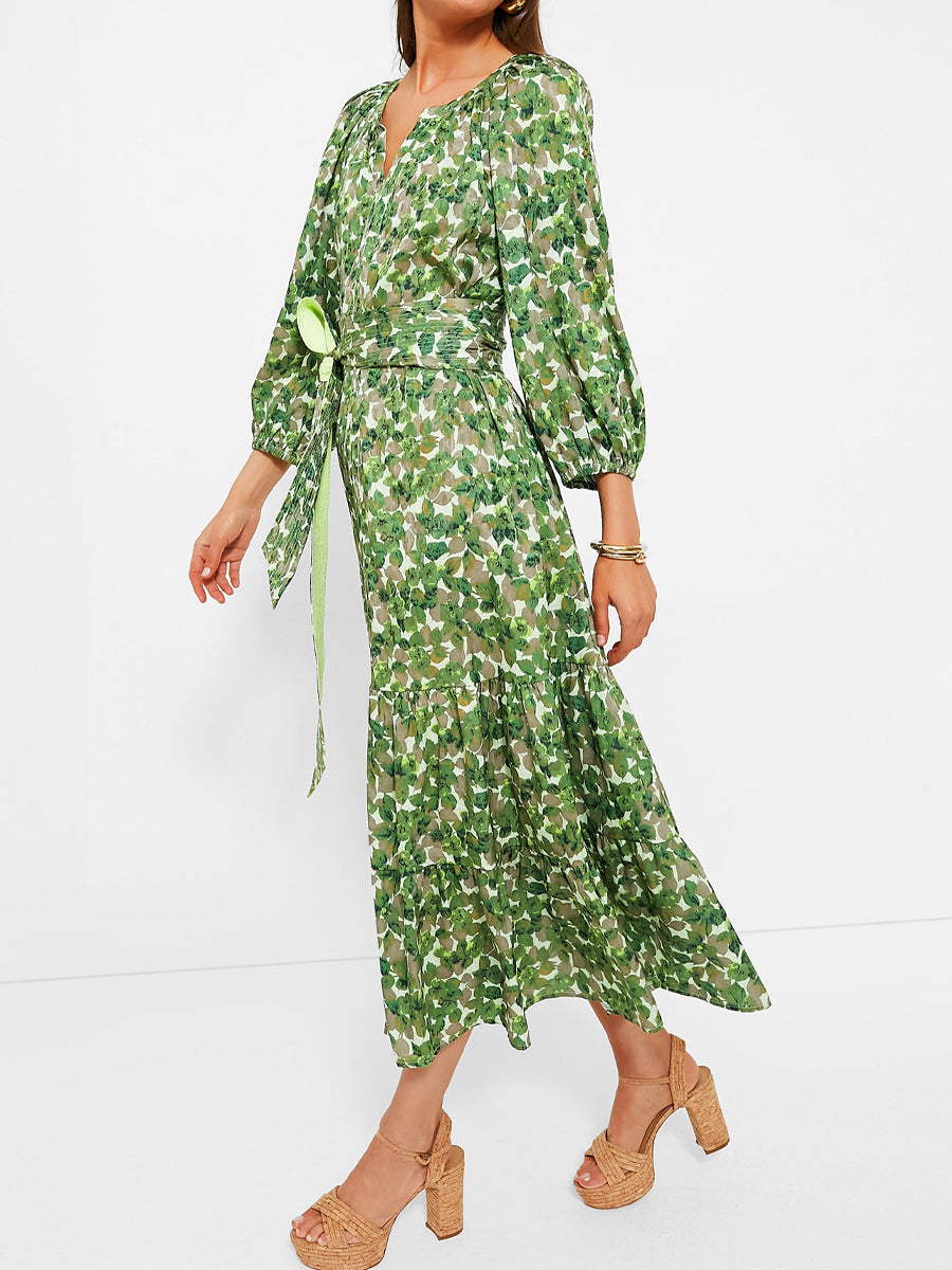 Floral Print Lace Up Maxi Dress