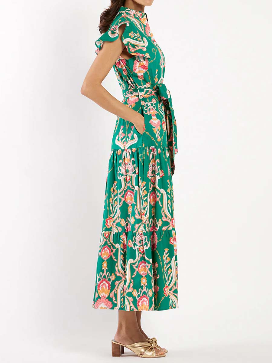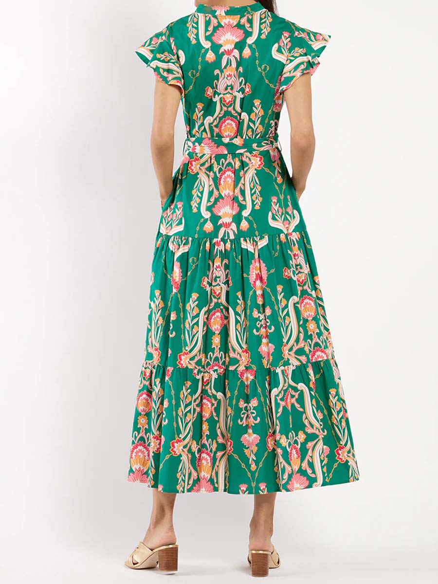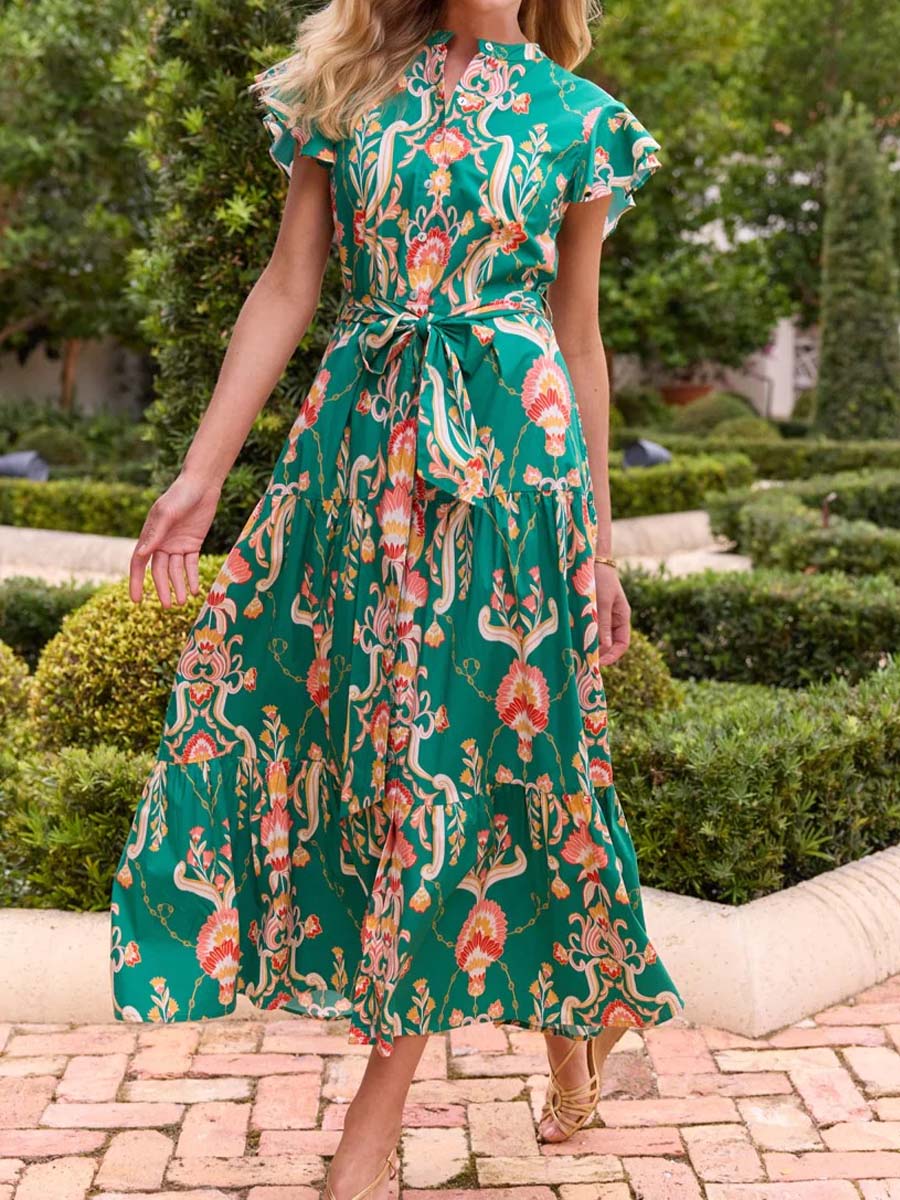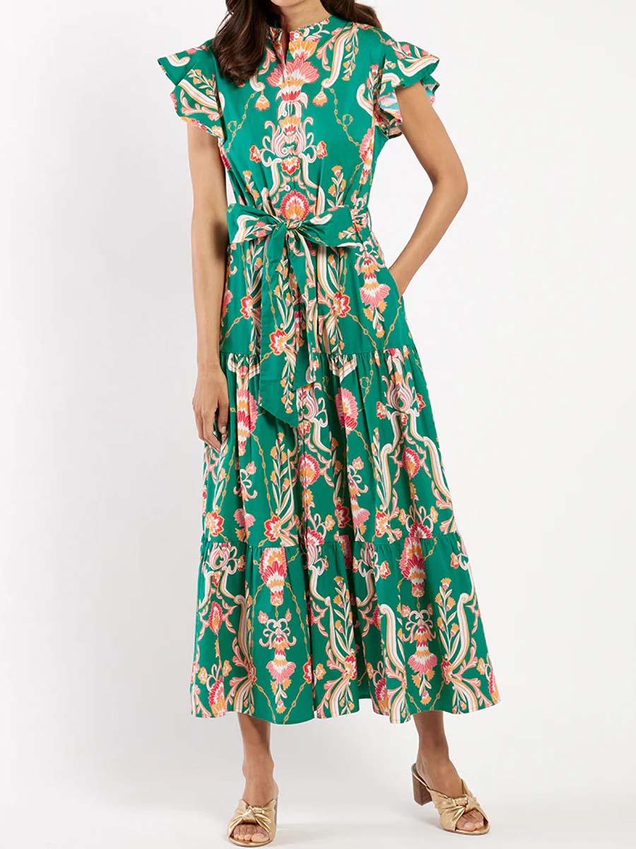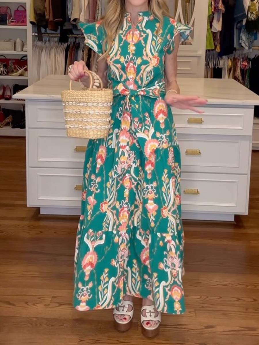 Floral Ruffled Sleeve Belted Maxi Dress