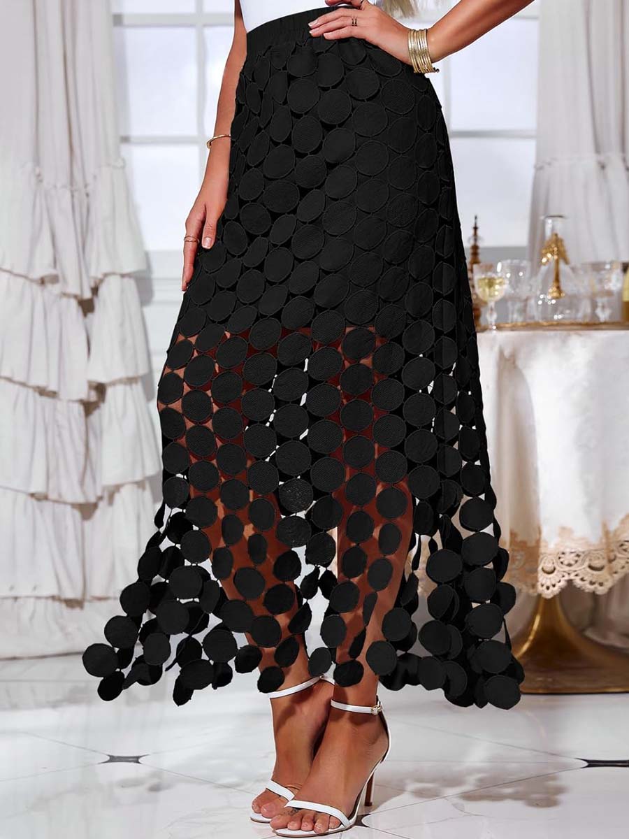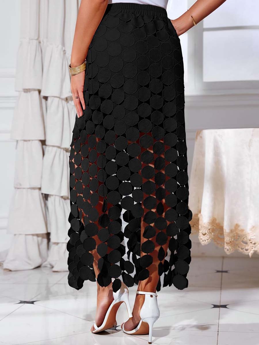 What Material We Use: Crafted from 100% polyester fabrics, this Women's Hollow Out Maxi Skirt is a fusion of comfort and style. Complementing the airy exterior, a soft, skin-friendly polyester lining ensures modest coverage while maintaining a gentle feel against the skin
