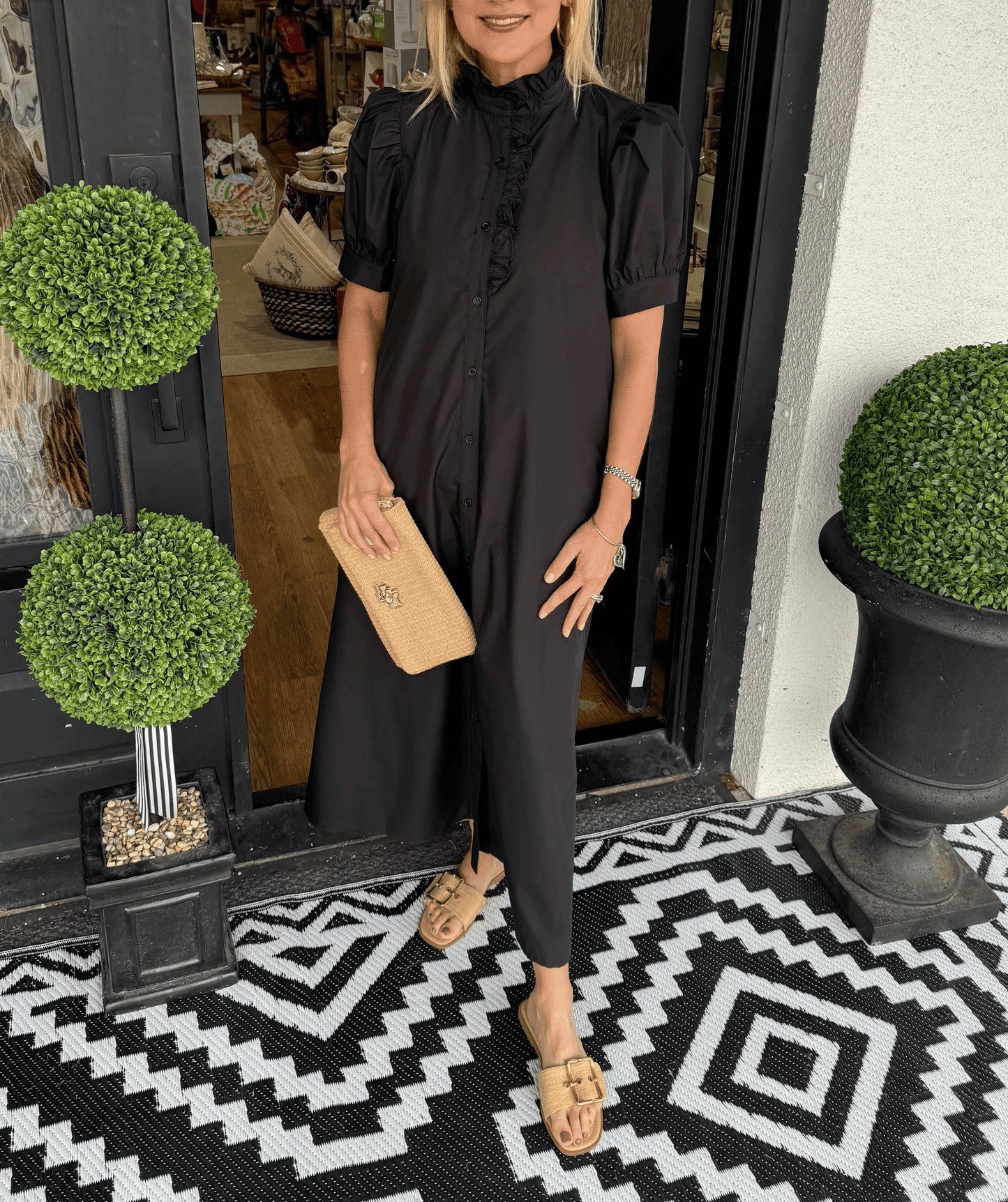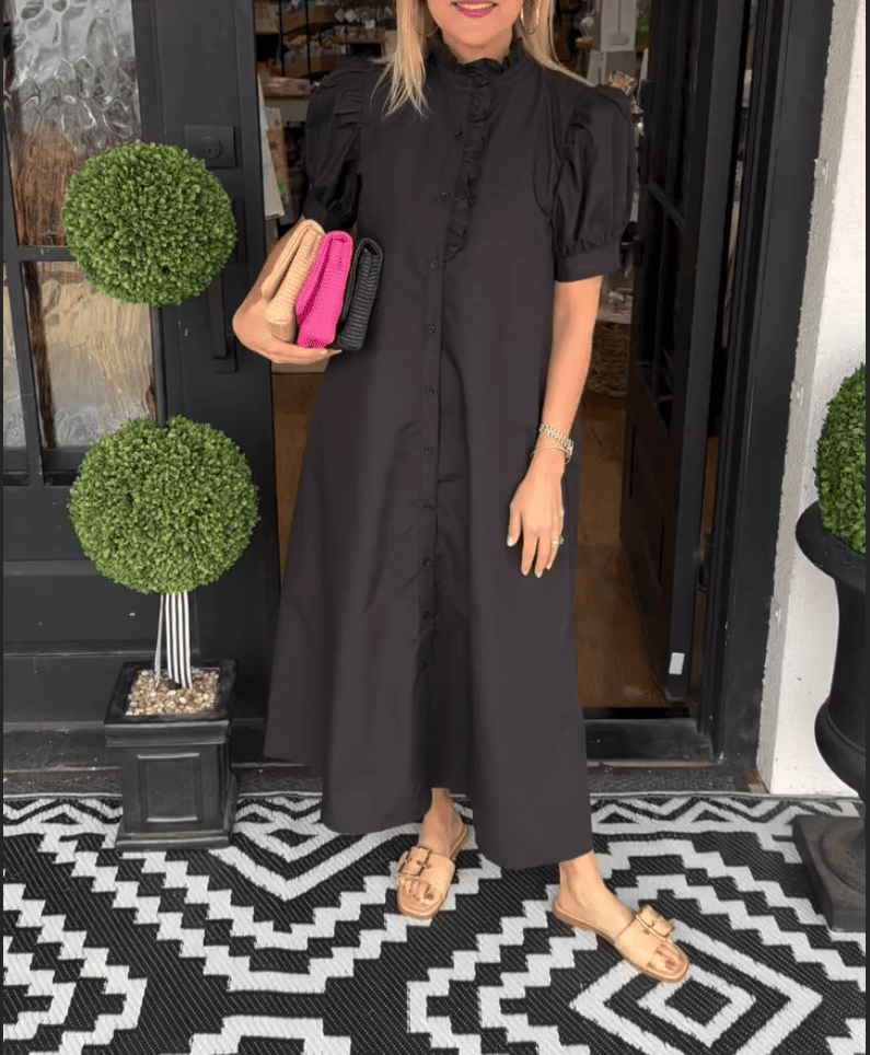 Button cuffed short puff sleeves