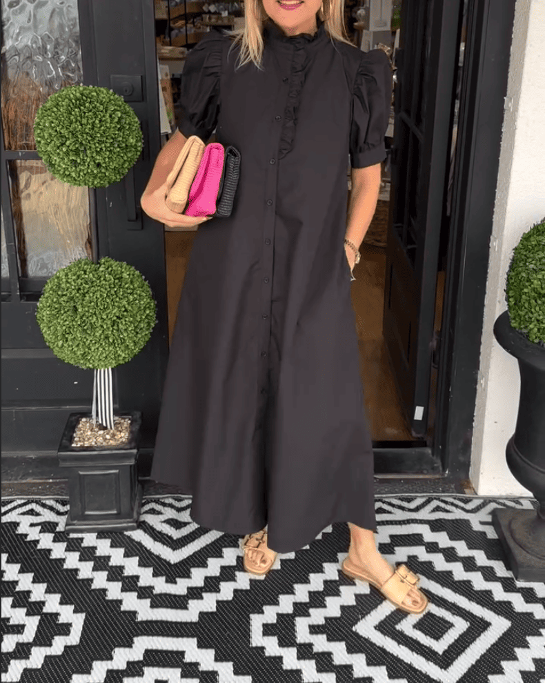 Lace Bubble Sleeve Button Down Dress