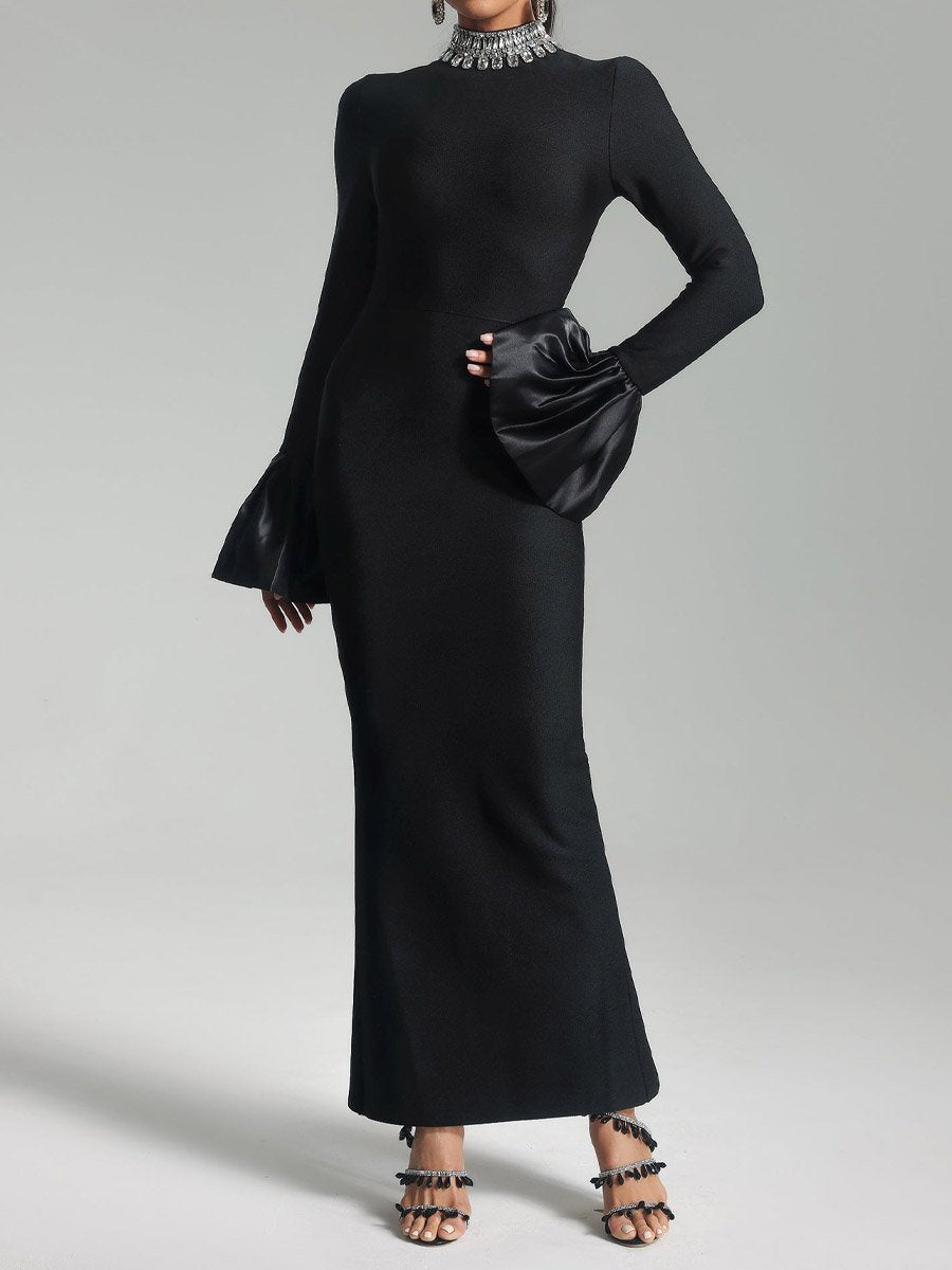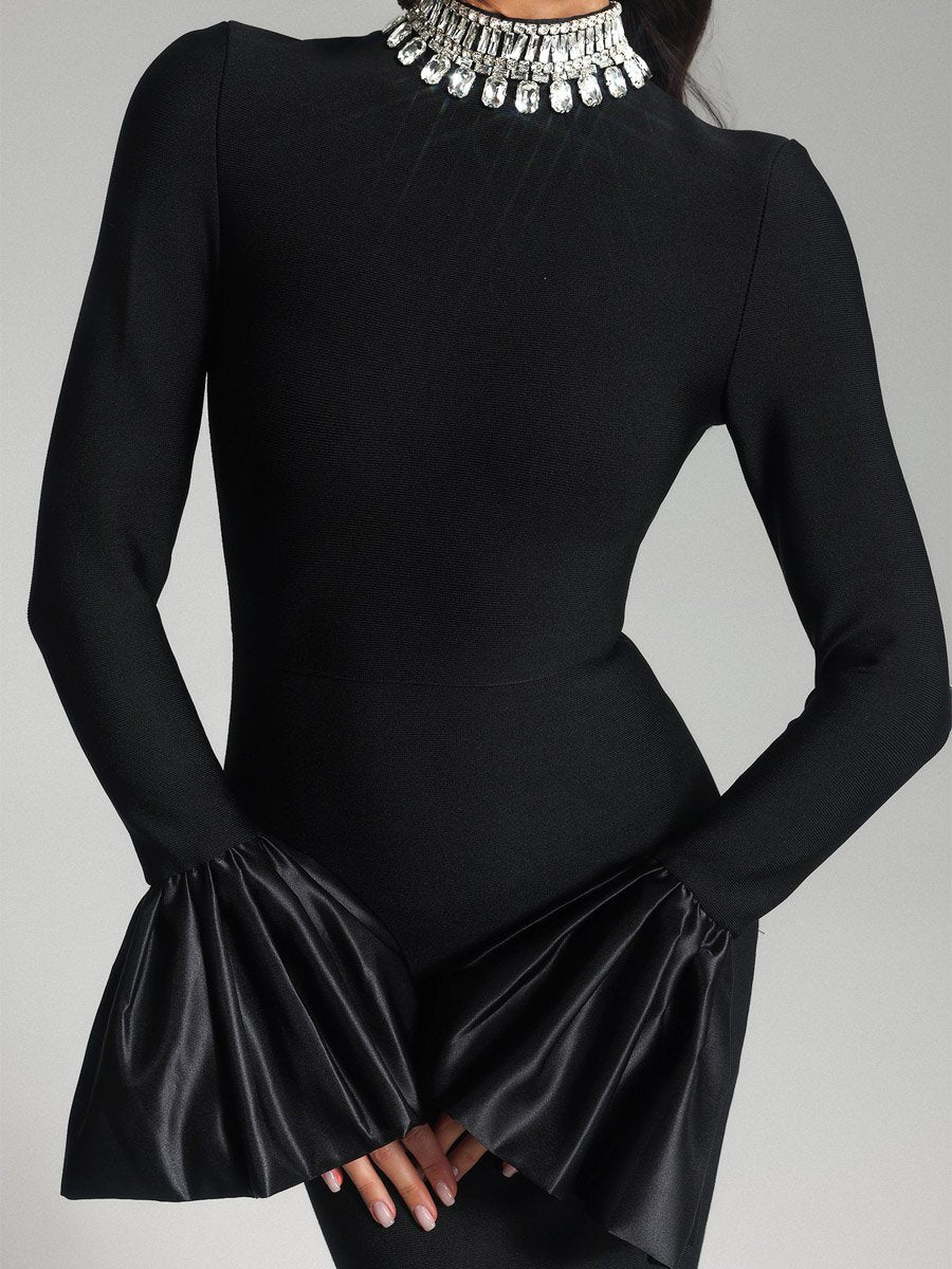Rhinestone Sparkle Flare Sleeve Slim Stretch Bandage Party Dress