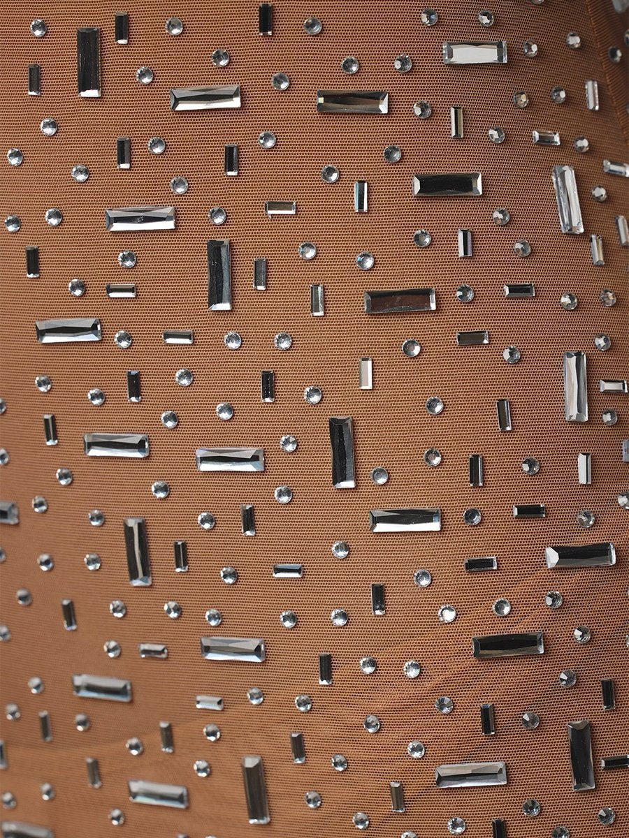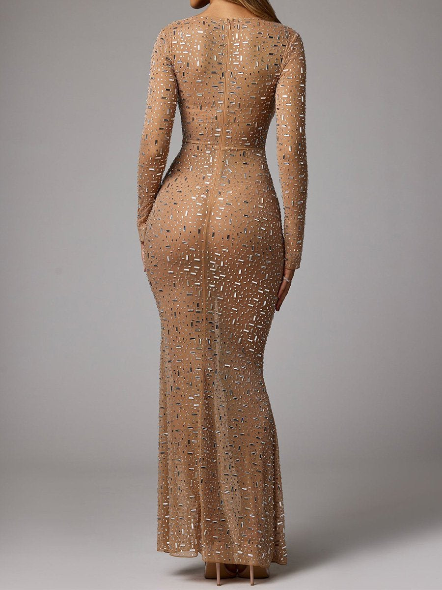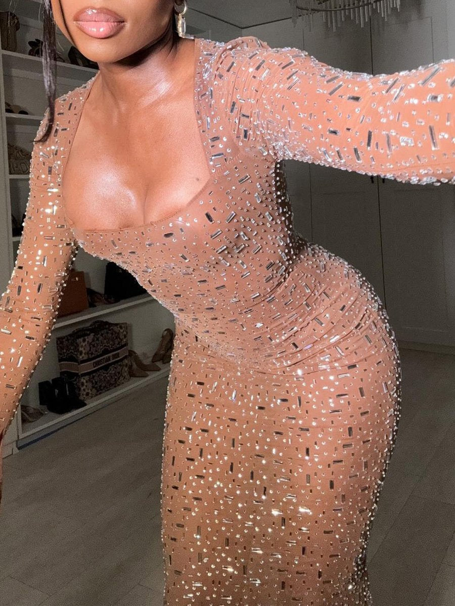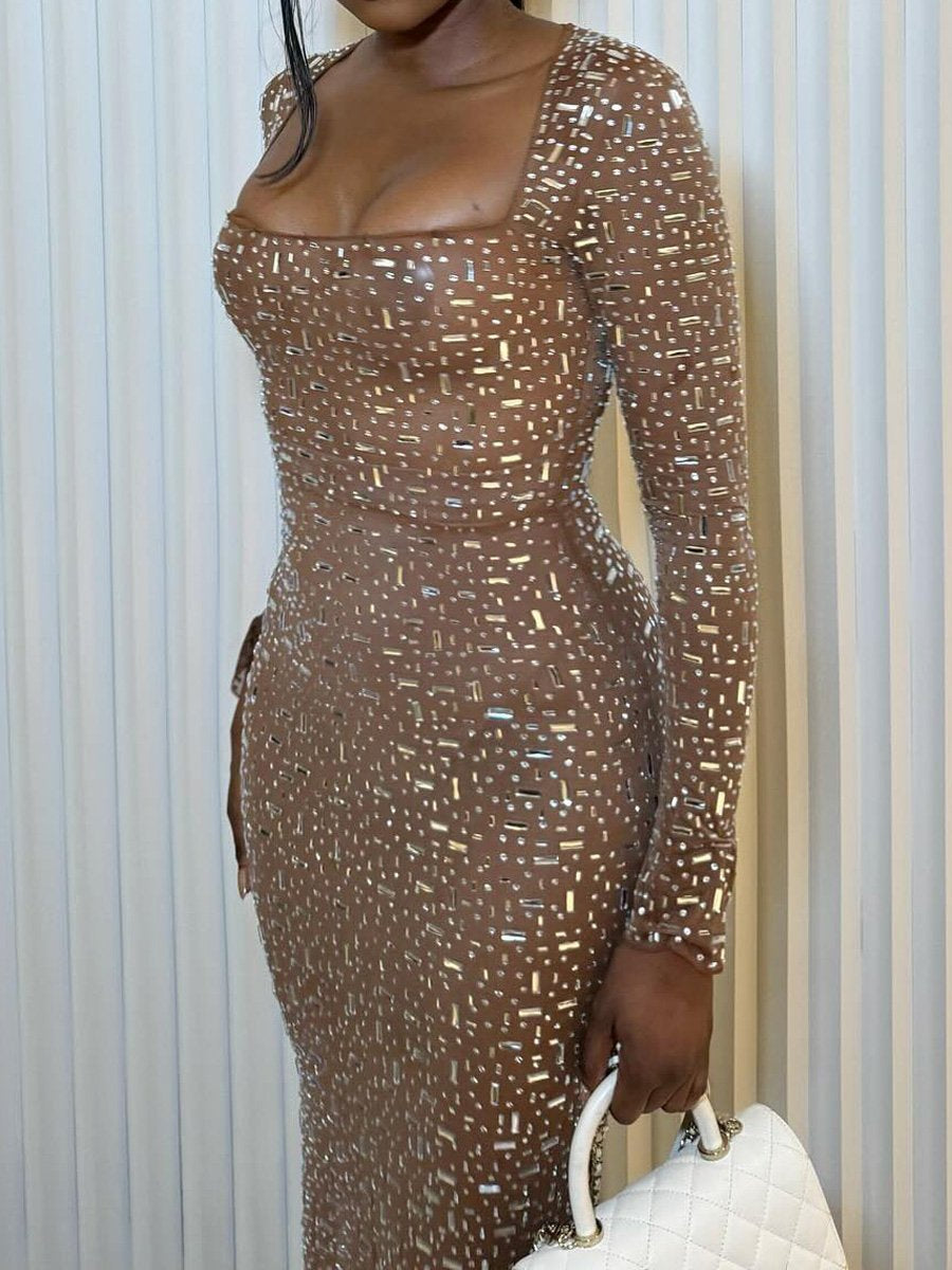 Rhinestone Sparkle Long-sleeved Square Collar Dress