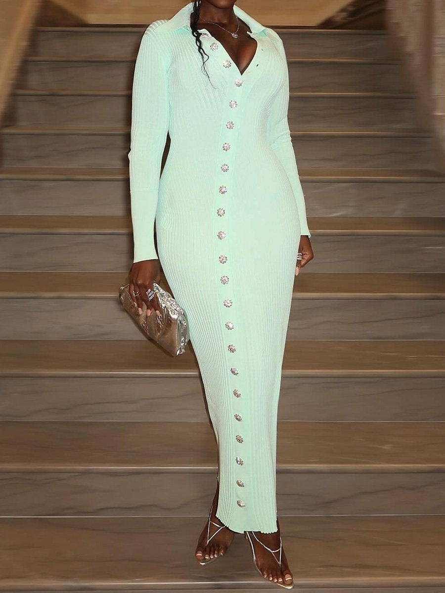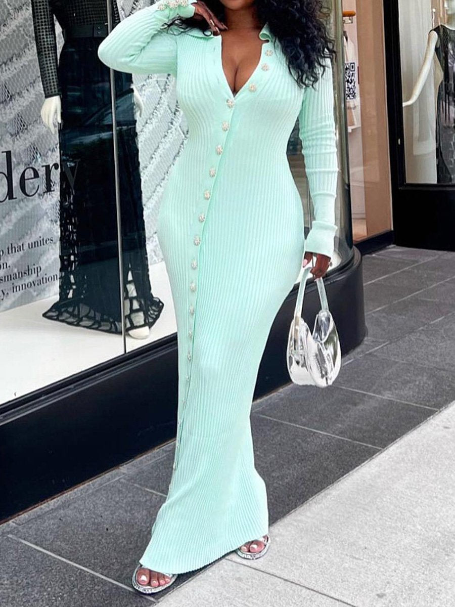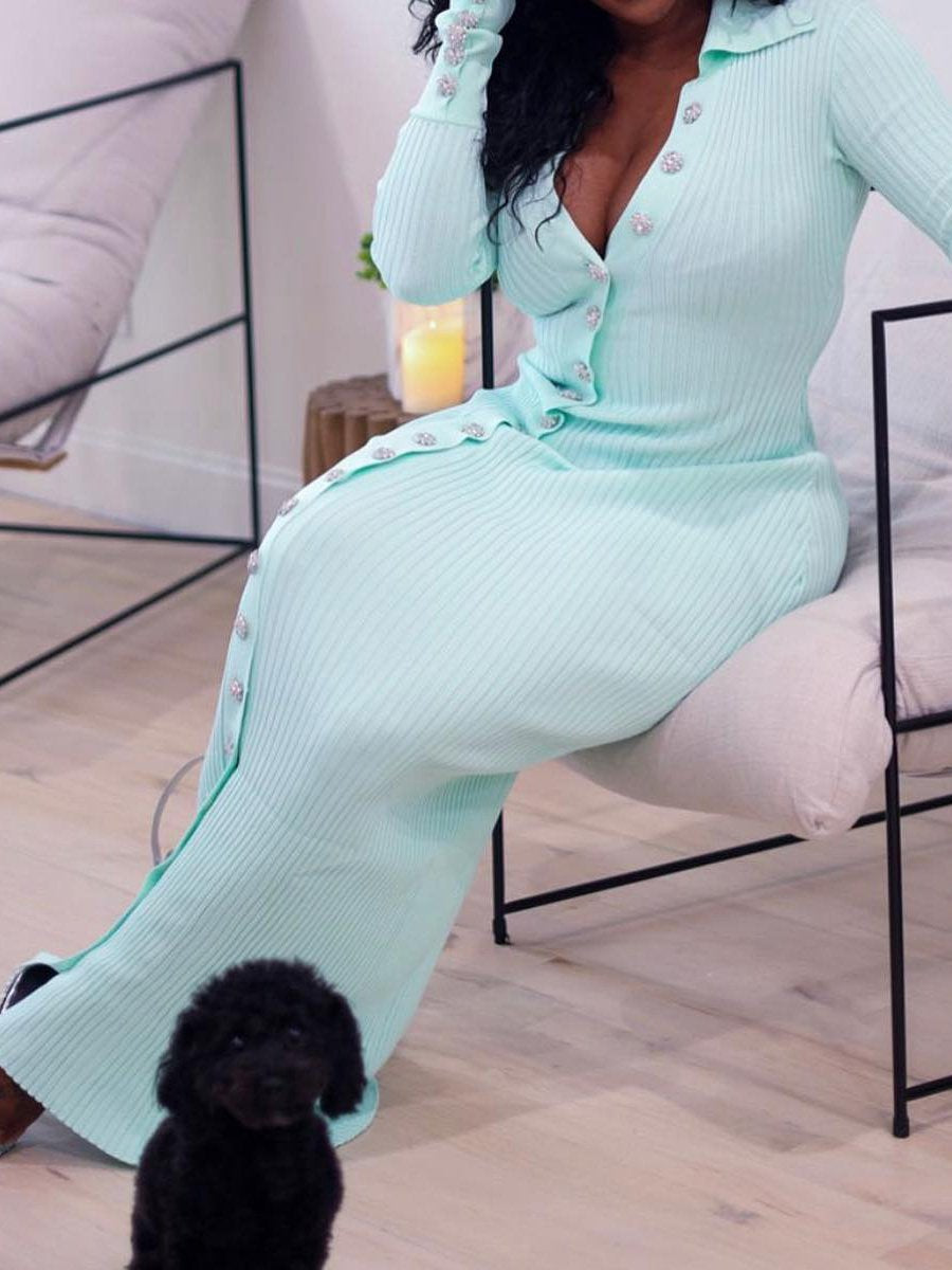Sexy Knitted Button Up Slit Hem Maxi Dress