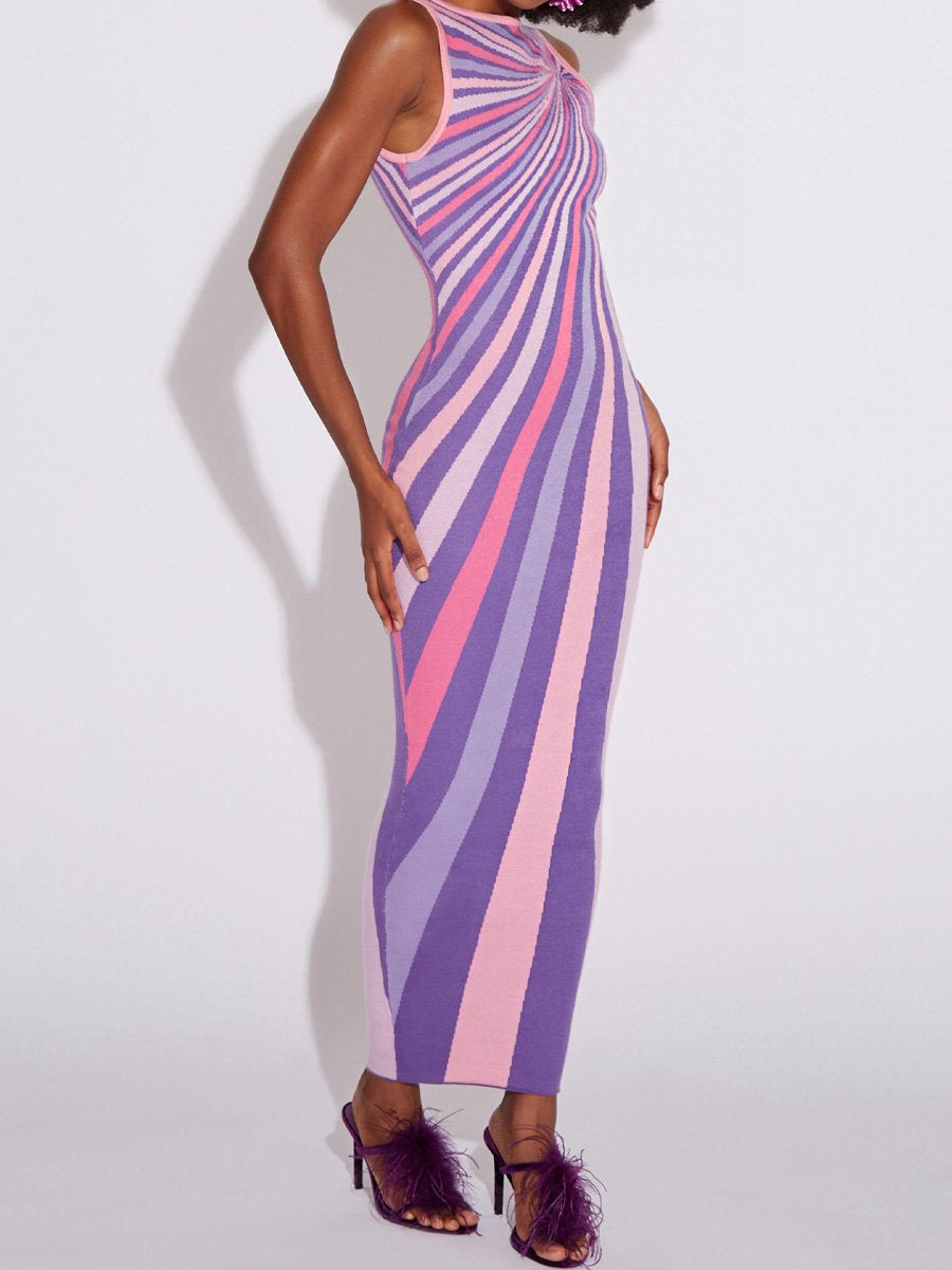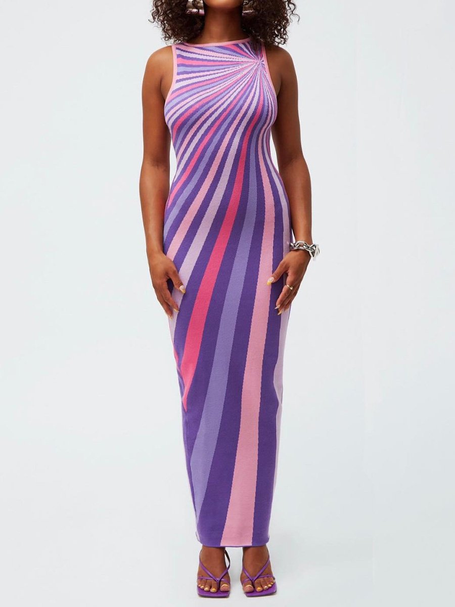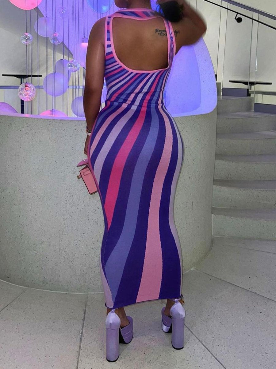 Sleeveless Striped Backless Maxi Dress